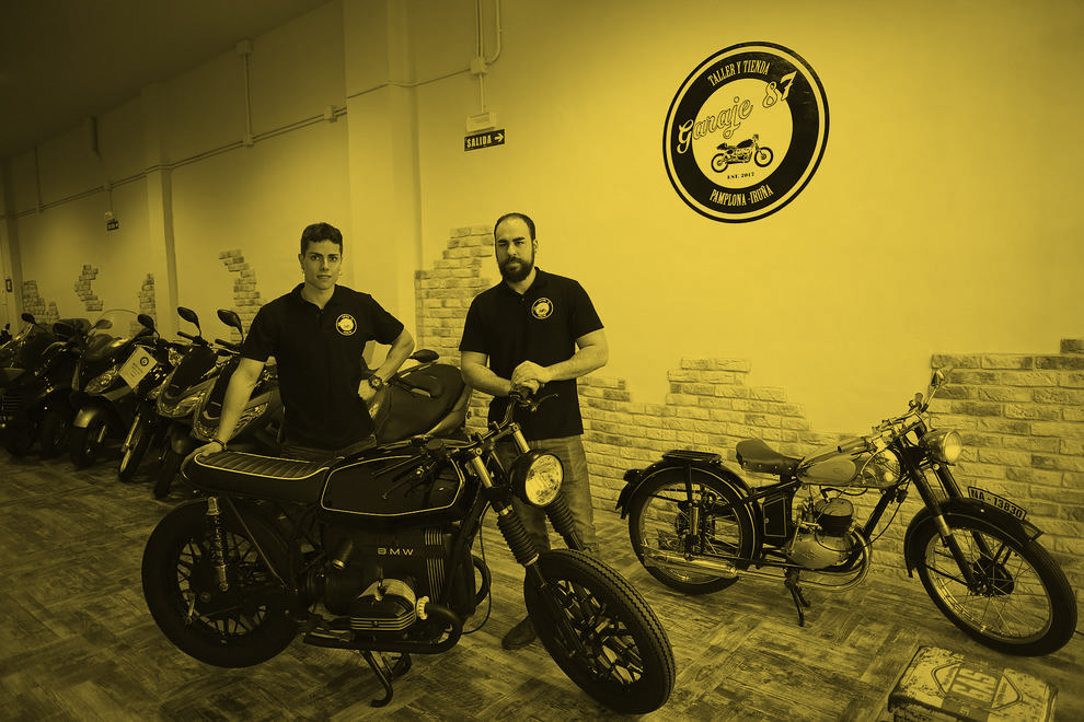 Garaje 87 es un taller y tienda de motos multimarca ubicado en el centro de Pamplona, especializado en motocicletas japonesas. Nace en noviembre de 2017 de la mano de dos amigos: Iñigo, mecánico de motos con más de 11 años de experiencia en talleres oficiales de Honda y Yamaha, y Eugenio, ingeniero mecánico y gran apasionado del mundo de las dos ruedas.
